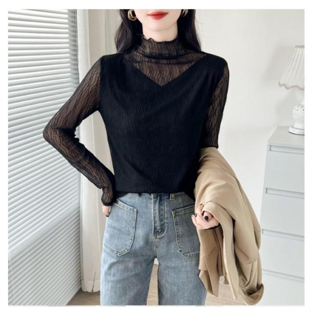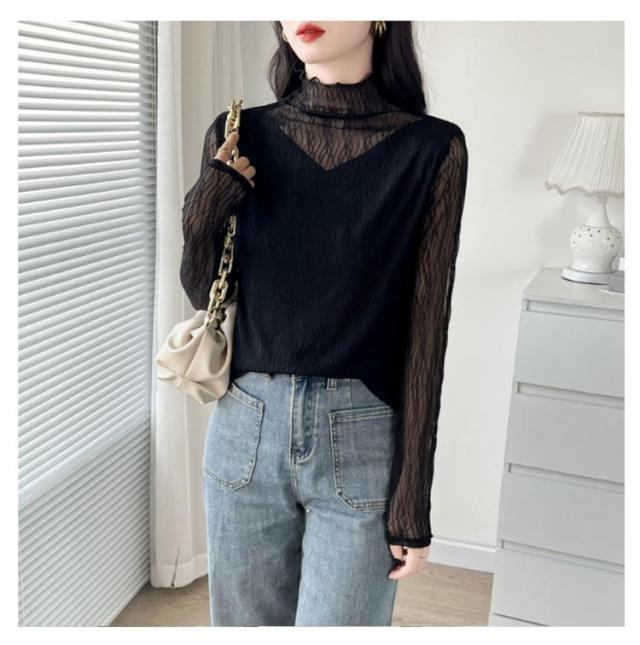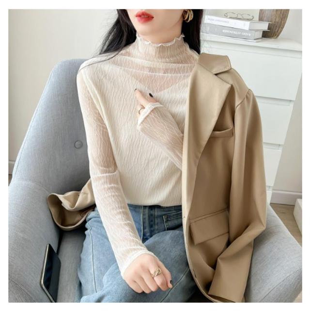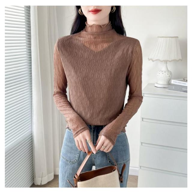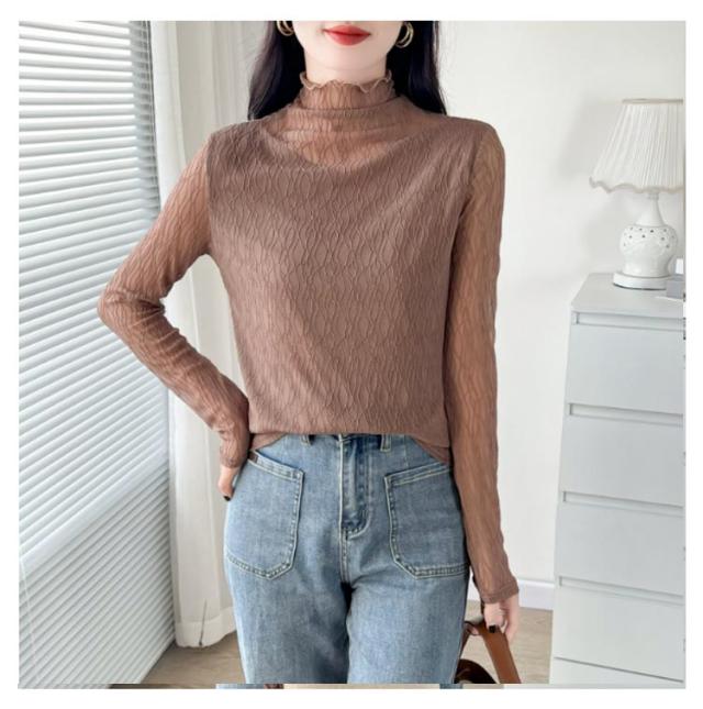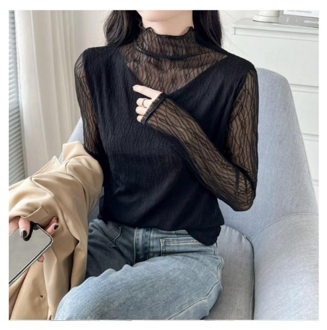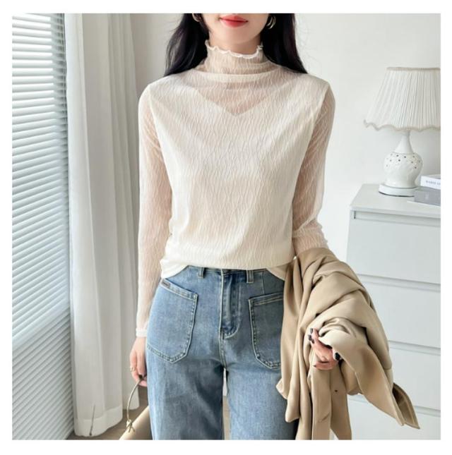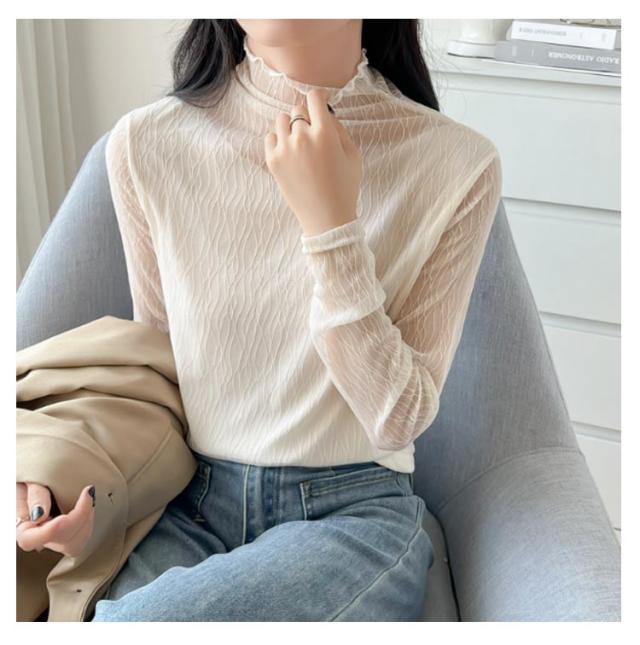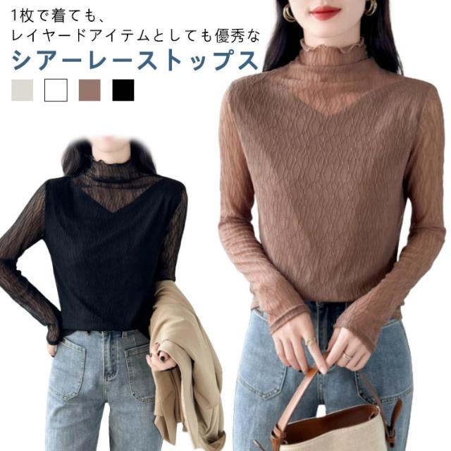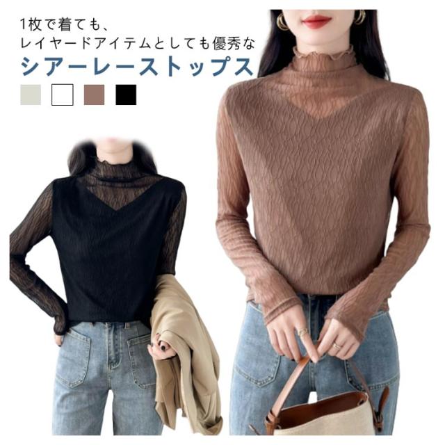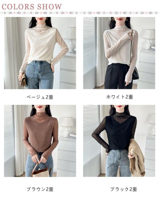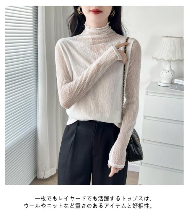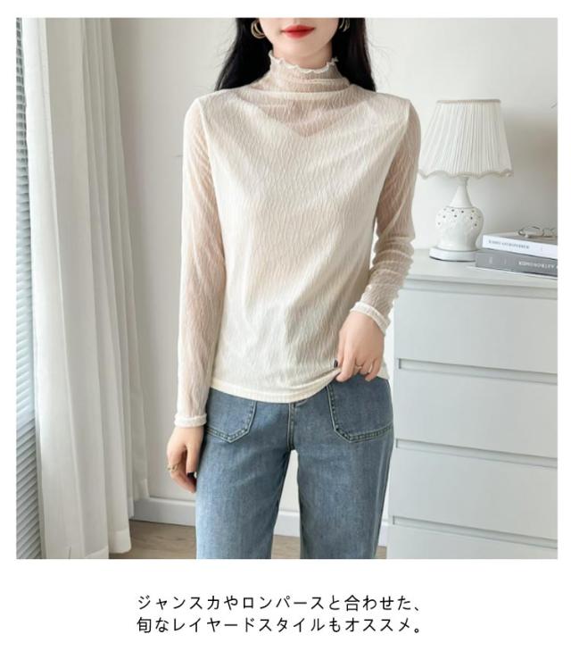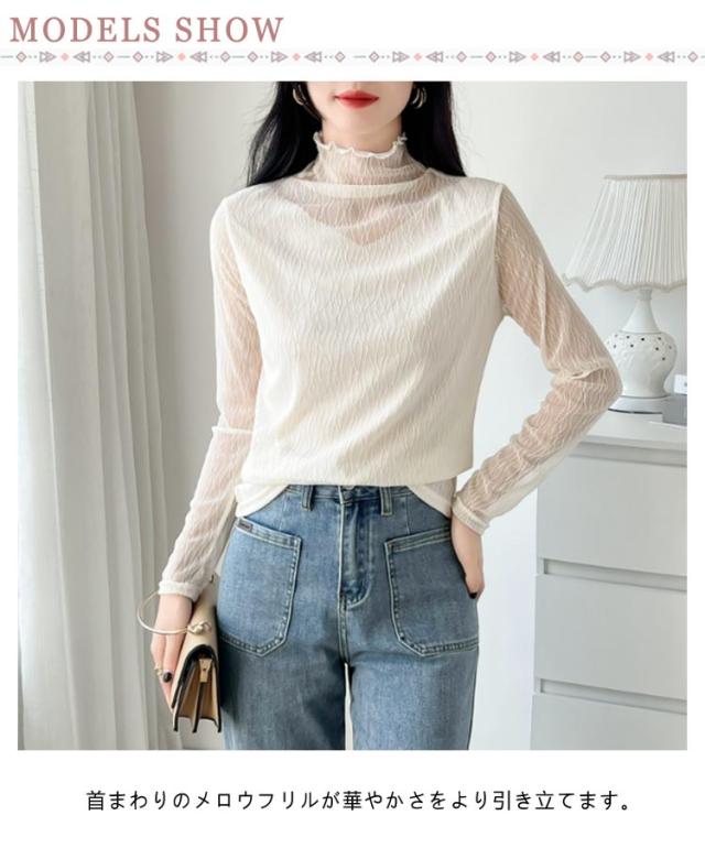 オフィス 襟 首のしわ メロウフリル 長袖 レース ハイネック ハイネック カットソー オケージョン レイヤード 重ね着 トップス カバー かわいい 透けない ビジネス インナー