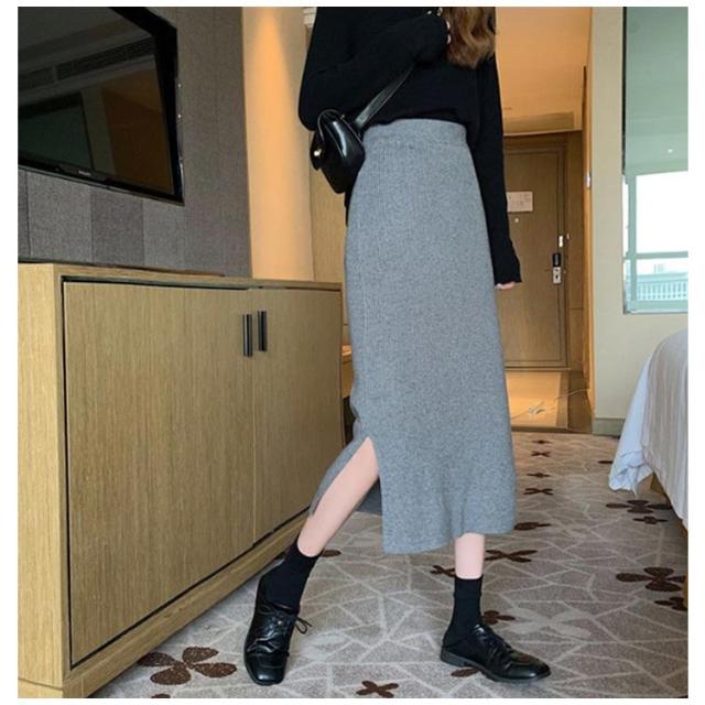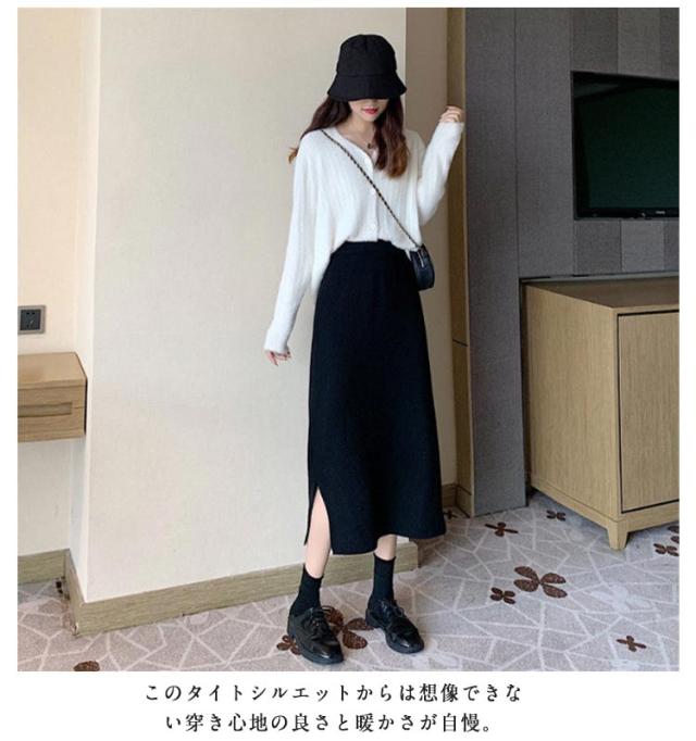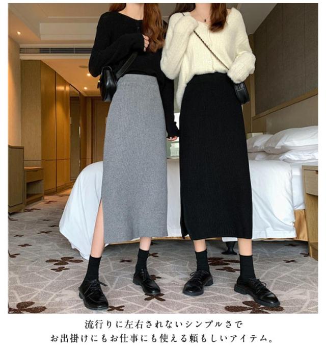 秋 スリットタイトニットスカート タイトスカート レディース ペンシルスカート ニットスカートリブニットスカート ニットスカート ロングスカート ボトムス ロング スリットタイトニットスカート ミモレ丈 動ける ウエストゴム 春 スカート 冬 送料無料 敬老の日
