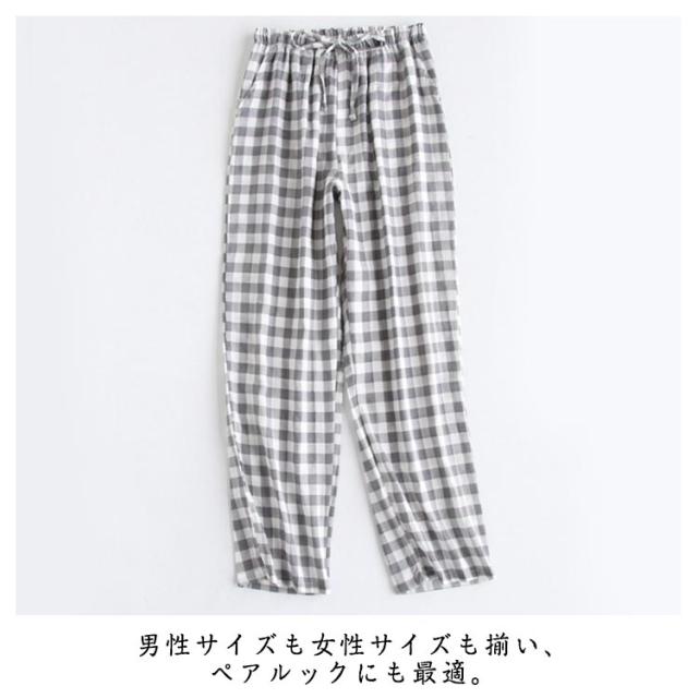 パジャマ ズボン レディース ペアルック パジャマパンツ メンズ ガーゼ 和風 綿100% ペアルック チェック柄 ウエストゴム ボトムス ルームウエア ゆったり 春 夏