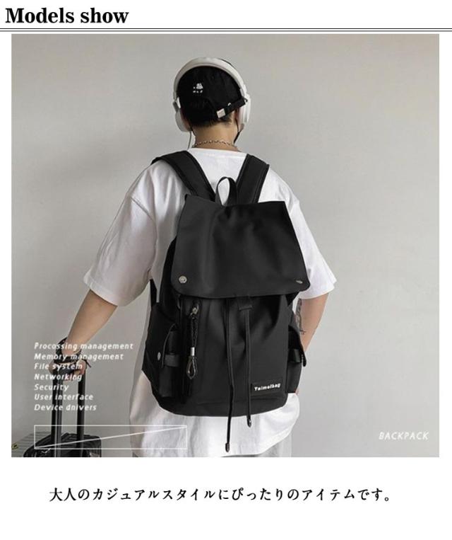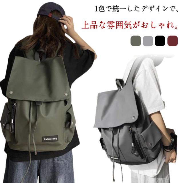 | 1色で統一したデザインで、上品な雰囲気がおしゃれ。 大人のカジュアルスタイルにぴったりのアイテムです。 男女兼用で使え、オールシーズンいつでも合わせやすいです。 お出かけなどのデイリー使いはもちろん、旅行やデート、マザーズリュックとしても大活躍します! オックスフォード製なので水や汚れにも強く雨の日でも安心です。 メインポケットはa4サイズや14インチPC収納ができます。 教科書やタブレットを収納でき、スマホや手帳を入れる小物ポケットもあるので 通勤 通学に最適です。 | |