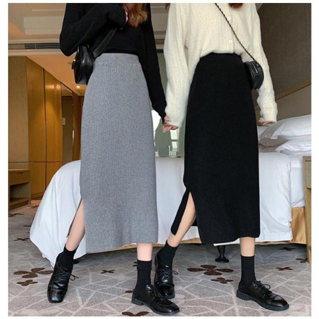 ミモレ丈 ロングスカート スリットタイトニットスカート ボトムス タイトスカート 動ける タイトスカート ニットスカートリブニットスカート スカート ニットスカート 敬老の日 ペンシルスカート ロング ウエストゴム 春 秋 冬 送料無料 レディース