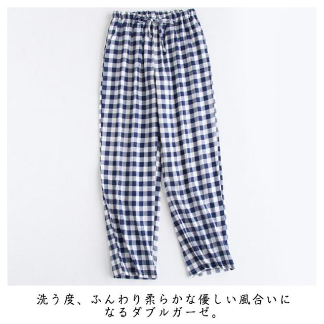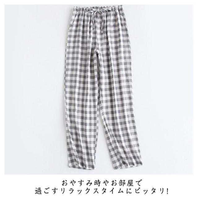 ズボン ペアルック レディース ルームパンツ メンズ パジャマ 和風 綿100% パジャマパンツ ガーゼ チェック柄 ウエストゴム ボトムス ルームウエア ゆったり 春 夏