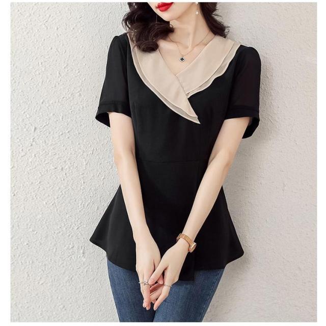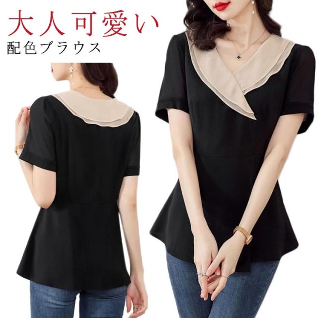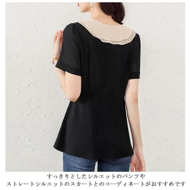 tシャツ トップス セーラー襟 半袖 プルオーバー レディース スーツ インナーシャツ トップス 半袖 セーラー襟 シフォン とろみ感 ブラウス 可愛い おしゃれ 流行 カジュアル きれいめ シンプル 大人可愛い ゆったり 大きめ