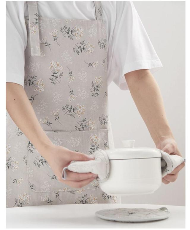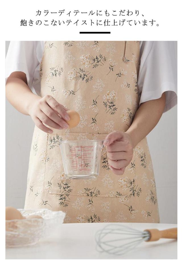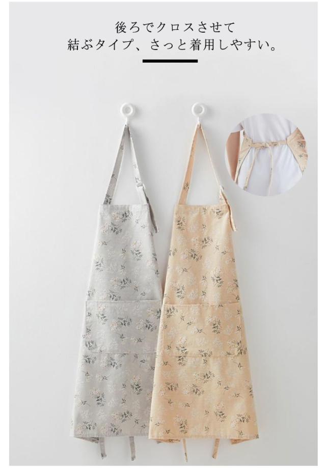 | 大きい花柄がとってもかわいい♪温かみのある、優しいエプロンができました。 後ろでクロスさせて結ぶタイプ、さっと着用しやすい。 大判のフロントポケット付き、メモやレシピなどを入れることができます。 明るく可愛い花柄は家事を楽しくしてくれます! カラーディテールにもこだわり、飽きのこないテイストに仕上げています。 | |