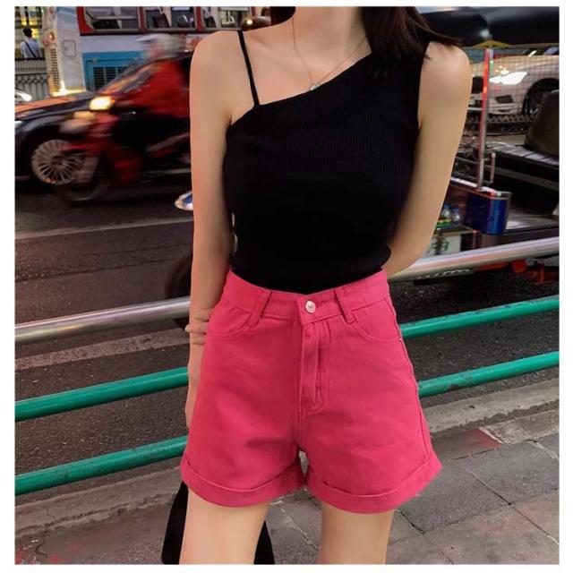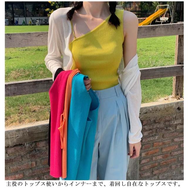 レディース キャミソール タンクトップ タイト トップス 無地 リブ インナー アシンメトリー アシンメトリー 肌見せ ワンショルダー フリーサイズ フィット感 ブラック オレンジ イエロー ホワイト アシンメトリー ブルー