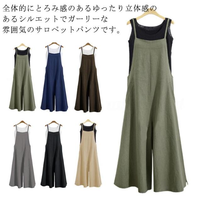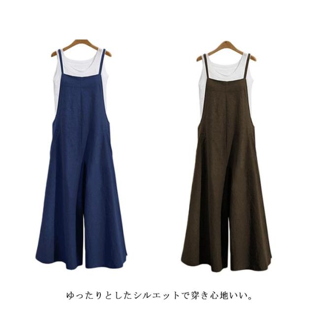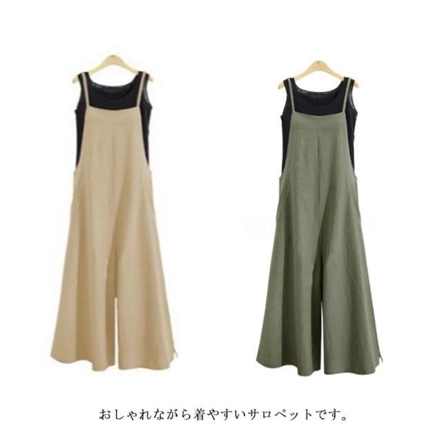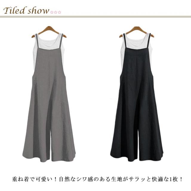 パンツ オールインワン サロペット ガウチョパンツ キャミソール シワ感 体型カバー オーバーオール 無地 重ね着 サロペット サロペットパンツ マキシ丈 薄手 ワイドパンツ ワイド ボトムス 通勤 ブラック 春 夏 大きいサイズ