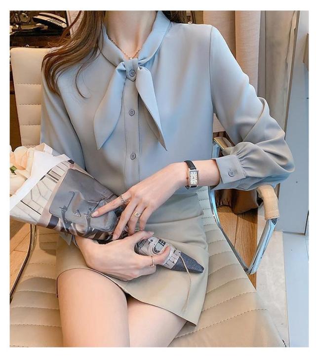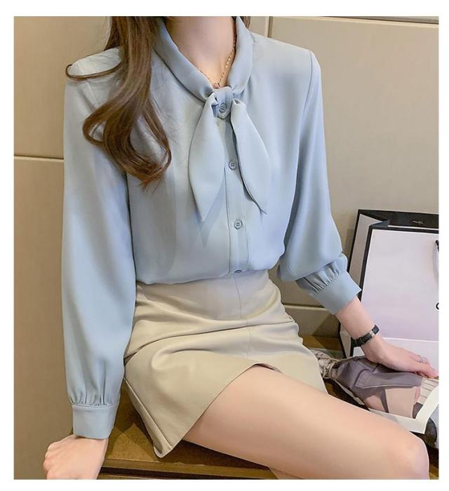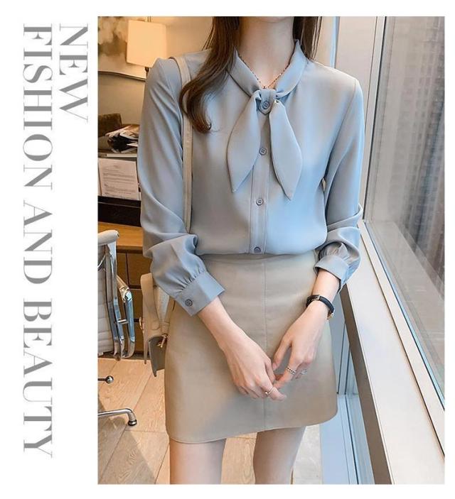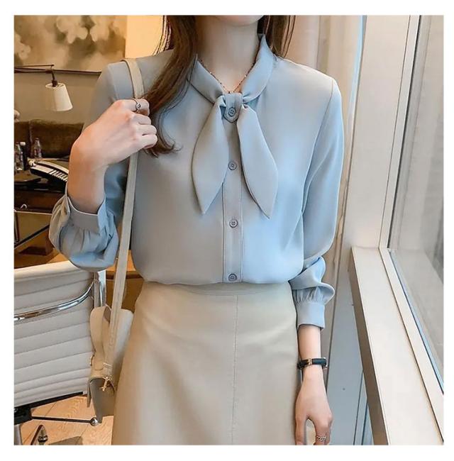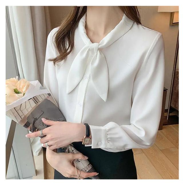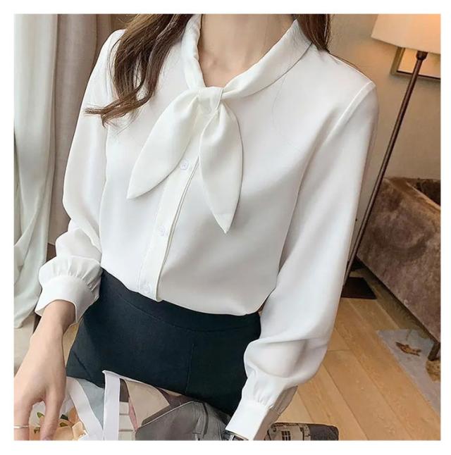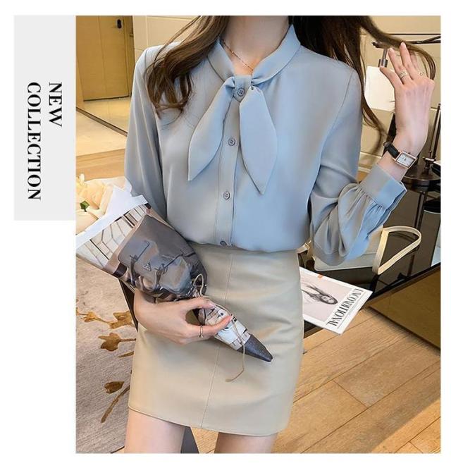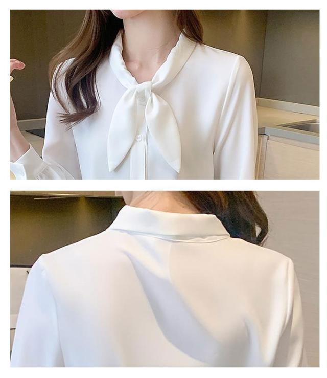 長袖 ワイシャツ 可愛い リボンブラウス シャツ ブラウス 大人 ボウタイ 着痩せ ブラウス スリム レディース 白 ブルー オフィス 通勤 無地 春夏 大きいサイズ