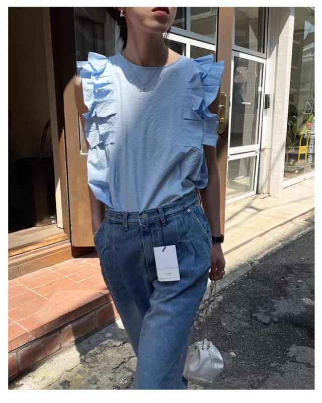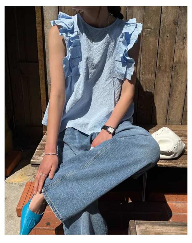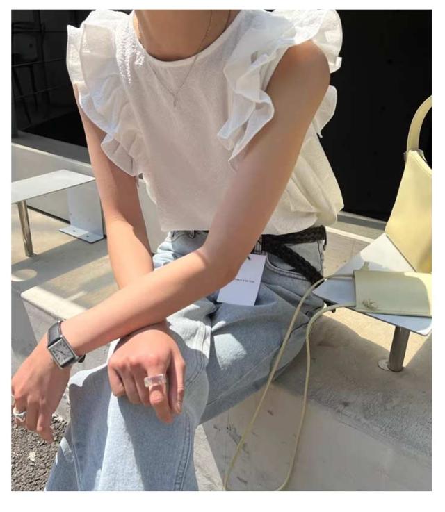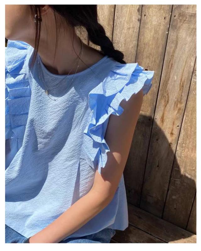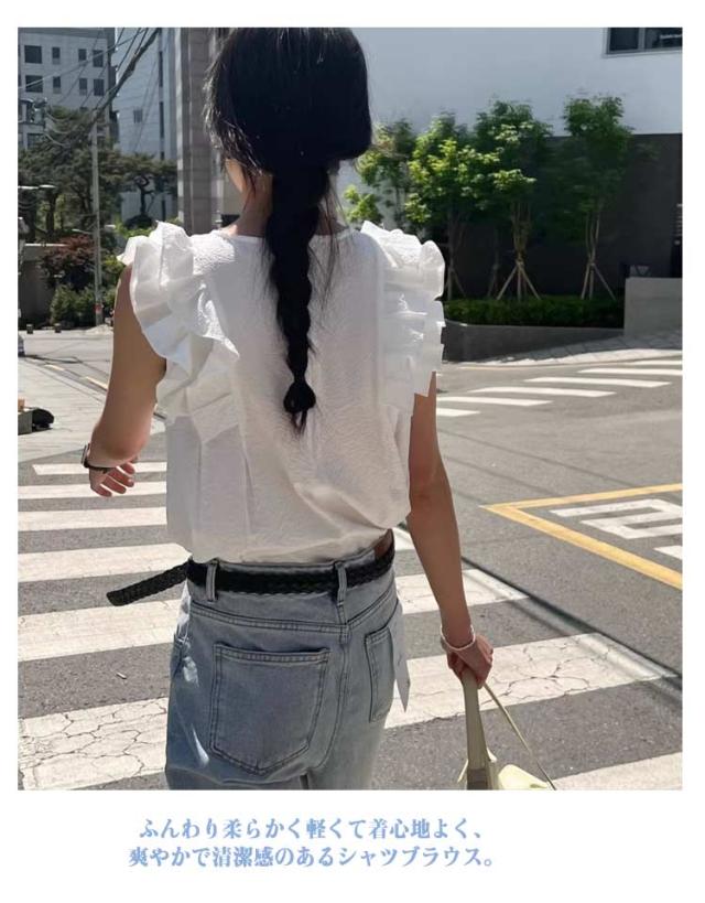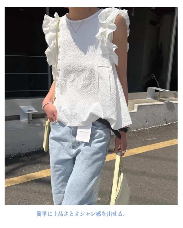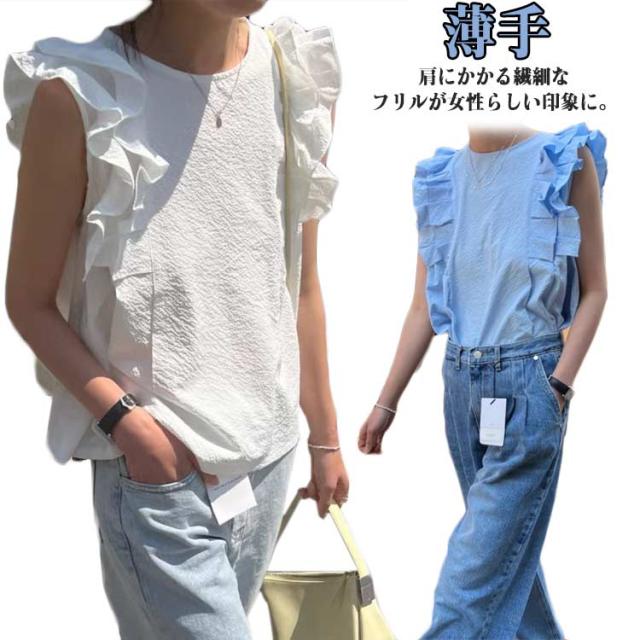 ブラウス シャツ ノースリーブ フリルブラウス オーバー ブラウス キレイ目 レディース フレンチスリーブ フリル袖 ギャザー Aライン 体型カバー オケージョン ノースリーブ カジュアル ふんわり 大人 可愛い コーデ フェミニン 春