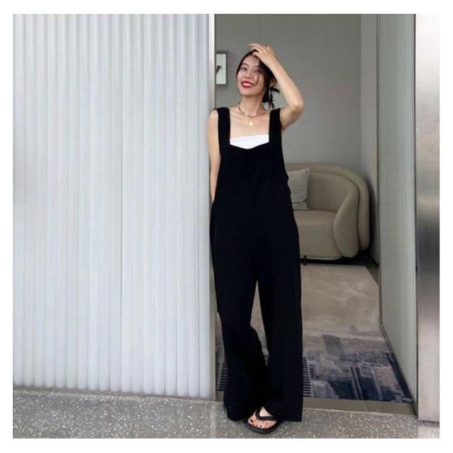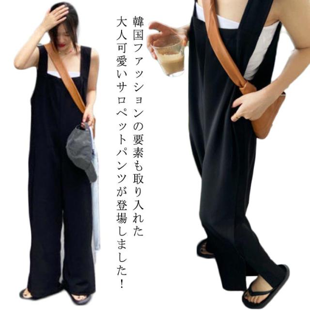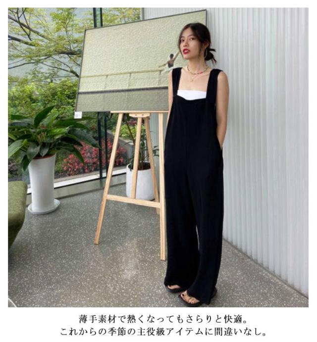 着痩せ ワイドパンツ オールインワン レディース かわいい シンプル サロペット ゆったり ブラック 無地 ロング丈 美脚 サロペット 春 夏 秋 体型カバー ガウチョパンツ 無地 カジュアル ボトムス パンツ 20代 30代