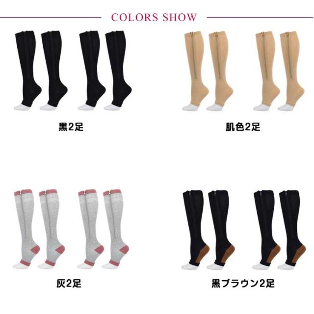 加圧 サポーター 【2足セット】ジッパー付き むくみ 着圧 着圧タイツ タイツ 靴下 女性 ふくらはぎ オープントゥ 着圧靴下 着圧ソックス ストッキング ロング ハイソックス 【2足セット】ジッパー付き つま先なし 弾性ストッキング 妊婦 大きいサイズ マタニティ
