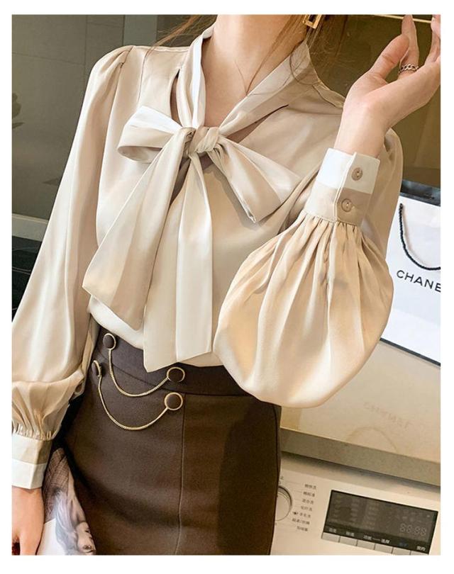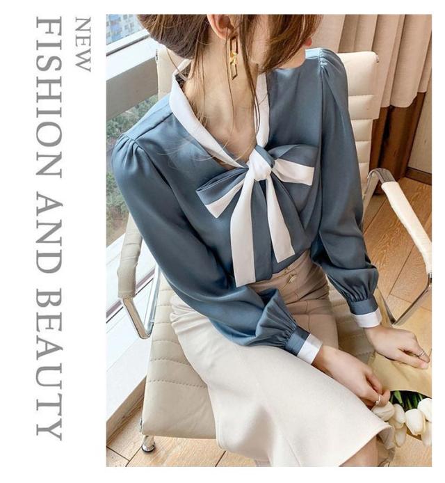 トップス ボウタイ お出掛け レディース ブラウス 配色ボウタイブラウス ボウタイリボン シャツ リボン 配色ボウタイブラウス ボウタイブラウス きれいめ デート 配色 オフィス 通勤 OL 日常 エレガント 卒業式 入学式 入園式