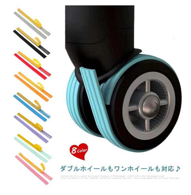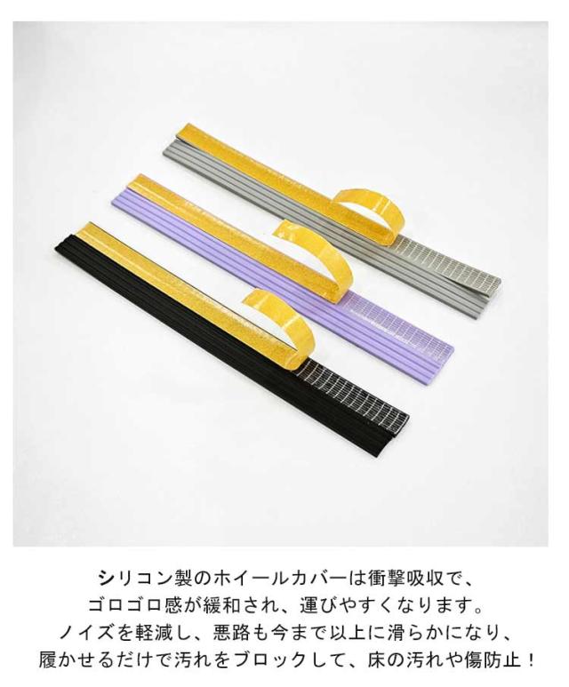 | ダブルホイールもワンホイールも対応♪ 貼るだけでキャスターをキズや汚れから守る粘着テープ式キャスターカバー。 シリコン製のホイールカバーは衝撃吸収で、ゴロゴロ感が緩和され、運びやすくなります。 ノイズを軽減し、悪路も今まで以上に滑らかになり、履かせるだけで汚れをブロックして、床の汚れや傷防止! キャリーケースだけではなく、椅子の足にもフィットすれば使えます。 | |