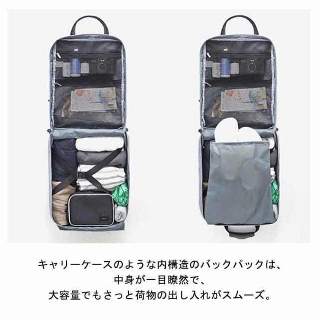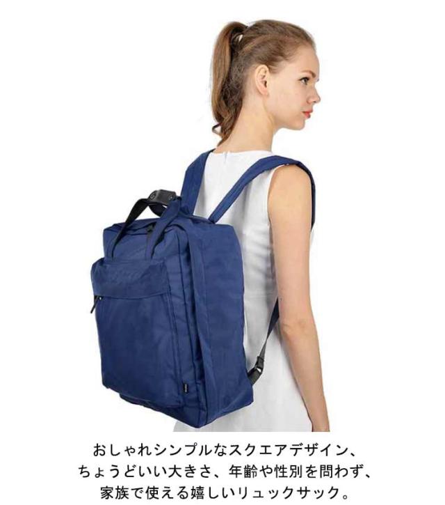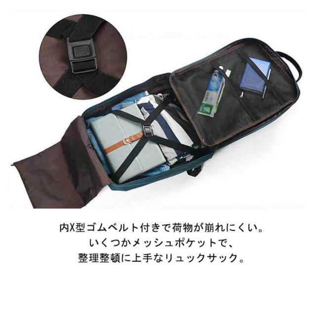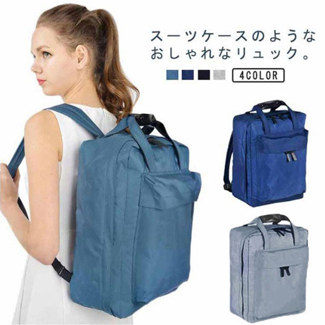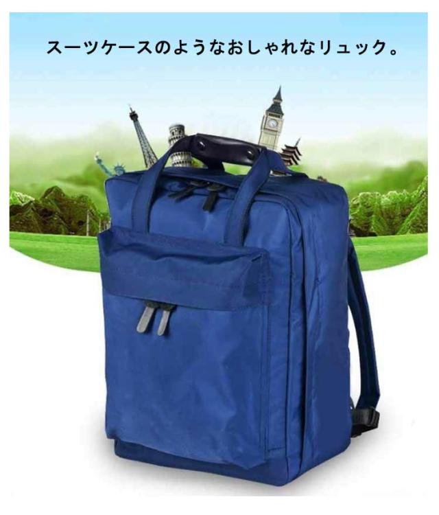 | スーツケースのようなおしゃれなリュック。 キャリーケースのような内構造のバックパックは、中身が一目瞭然で、大容量でもさっと荷物の出し入れがスムーズ。 内X型ゴムベルト付きで荷物が崩れにくい。いくつかメッシュポケットで、整理整頓に上手なリュックサック。 荷物カバーにもポケット付きで、ディテールにこだわった作りのトラベルリュック。 おしゃれシンプルなスクエアデザイン、ちょうどいい大きさ、年齢や性別を問わず、家族で使える嬉しいリュックサック。 旅行、出張、お仕事、お出かけ、レジャー、旅行時、ライブやコンサートなど様々な場面で大活躍する旅行リュック。 | |
