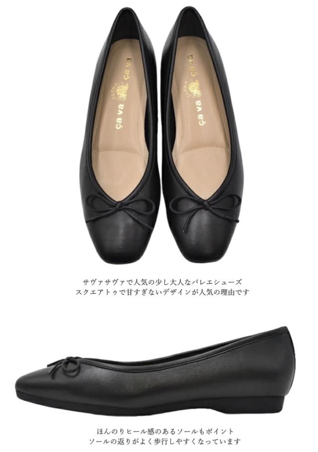 cavacava サヴァサヴァ バレエシューズ 6420029 撥水 スクエアバレエシューズ フラットシューズ 本革 レザー リボン レディース 靴 歩きやすい