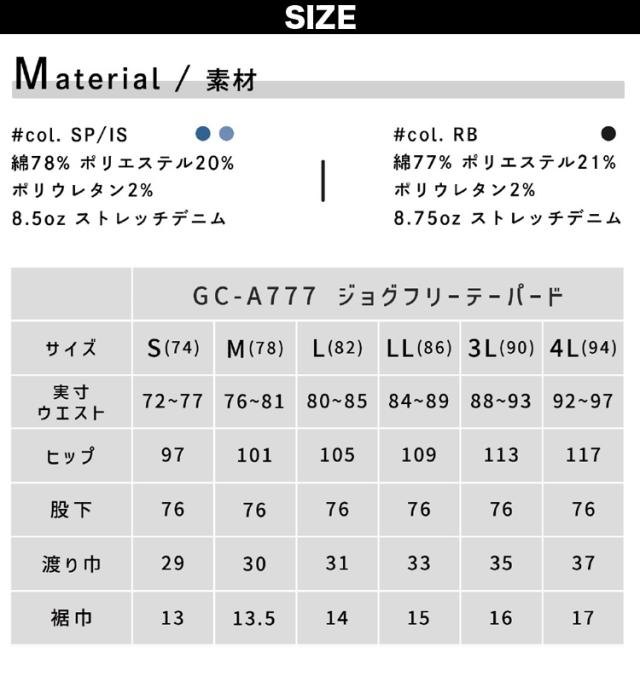 ジョグフリーテーパード GC-A777 S〜4L 限定デザイン ストレッチ ジョガー イージーパンツ ズボン 作業服 作業着 TAKAYA GRANCISCO グランシスコ タカヤ