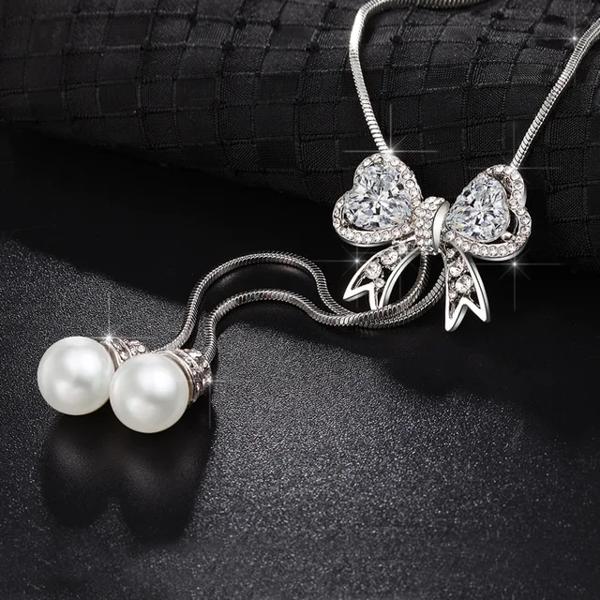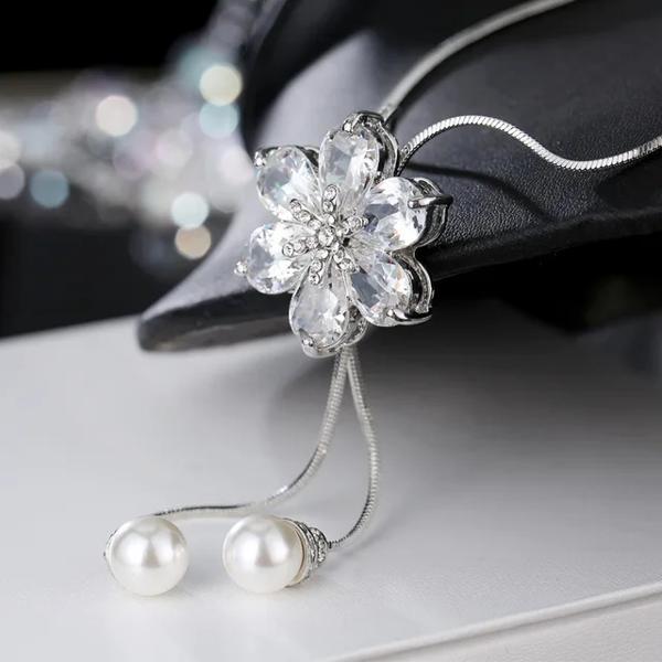 女性用ペンダント付きジルコニアバタフライネックレス ロングチェーン 韓国の葉 クリスタルフラワー ジュエリー ギフト 新品