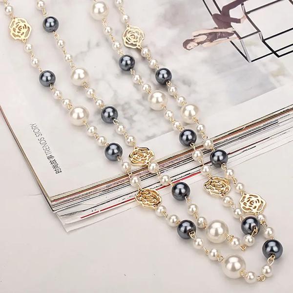 女性のための真珠で作られた有名な長いネックレス 二重層 収集可能なアーチ 牡丹 バラ セーター チェーン