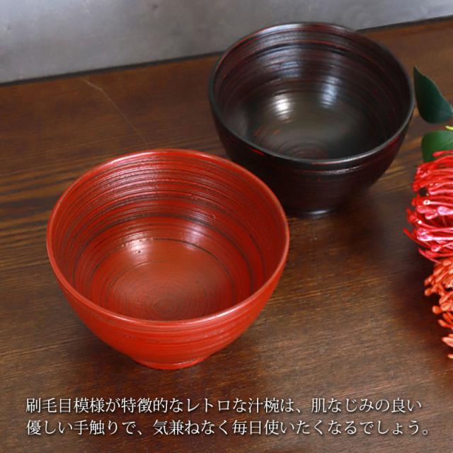 天然木製 汁椀 刷毛目 根来 曙 お椀 直径12cm お碗 鉢 ボウル 和風 おしゃれ モダン 食器 お茶碗 デザート ミニ丼 割れない 熱くない お味噌汁 麺 ヨーグルト 普段使い カフェ 漆器 漆塗り 赤 黒