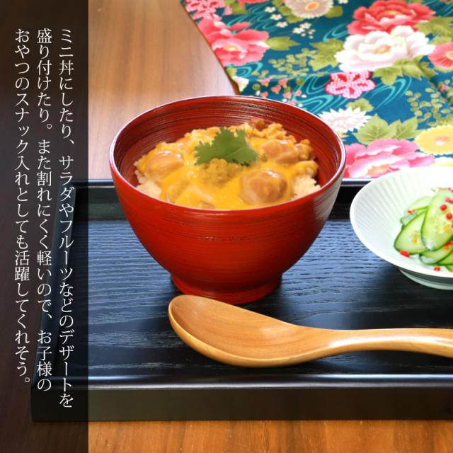 また割れにくく軽いので、お子様のおやつタイムのスナック入れとしても活躍してくれそう。天然木製 汁椀 刷毛目 根来 曙 お椀 直径12cm お碗 鉢 ボウル 和風 おしゃれ モダン 食器 お茶碗 デザート ミニ丼 割れない 熱くない お味噌汁 麺 ヨーグルト 普段使い カフェ 漆器 漆塗り 赤 黒