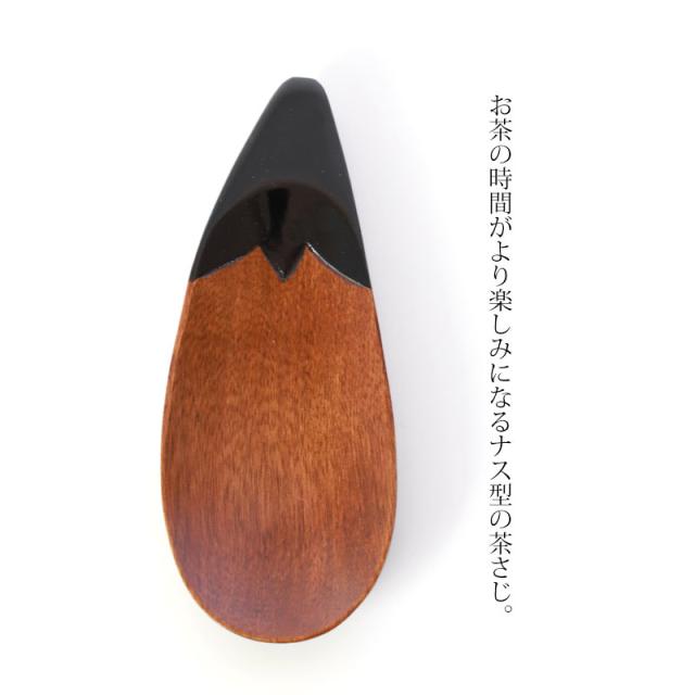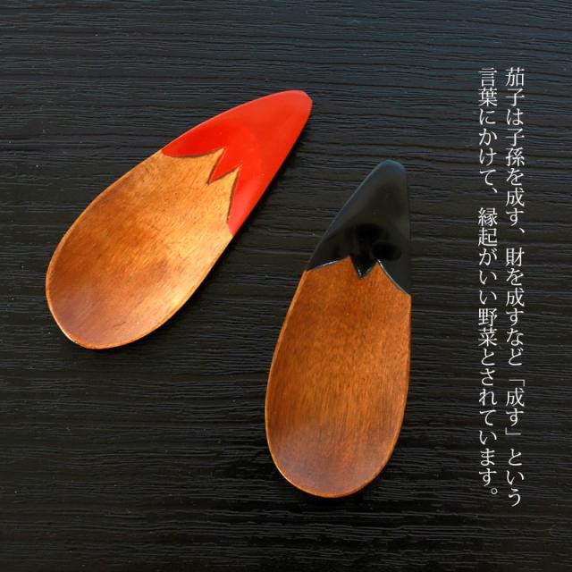 木製 ナス型 茶さじ 漆塗り おしゃれ かわいい 調味料スプーン 茶匙 ティースプーン お茶っ葉 紅茶 茶葉 薬味 砂糖 塩 小麦粉 縁起物 茄子 おうちカフェ カトラリー ウッドスプーン 赤 黒