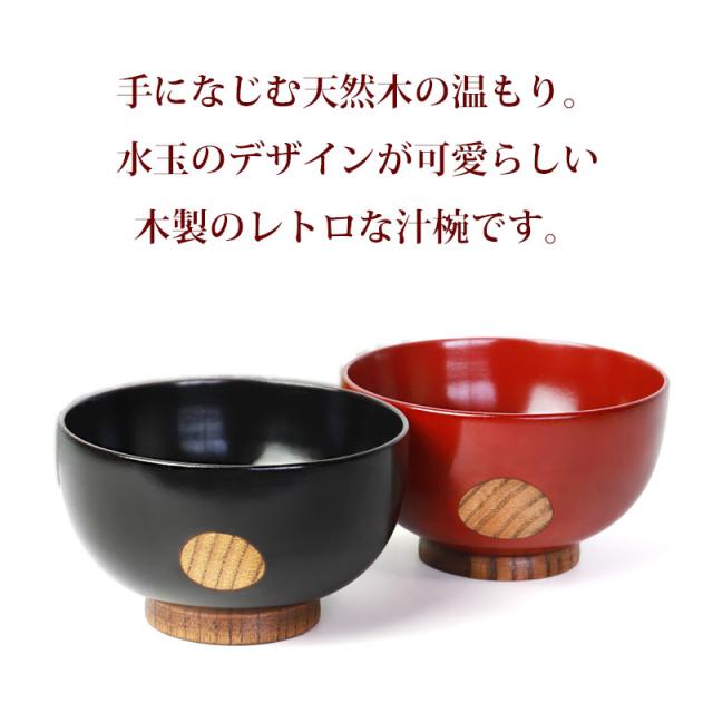 汁椀 天然木製 お椀 おわん 水玉 みずたま レトロ スープボウル 根来 曙 漆塗り お碗 おしゃれ モダン かわいい 割れない 割れにくい 持ちやすい 軽い 軽量 和風 和食器 和雑貨 赤 レッド 黒 ブラック うるし塗り 漆 漆器 木製