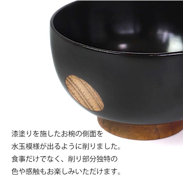 漆塗りを施したお椀の側面を水玉模様が出るように削りました。