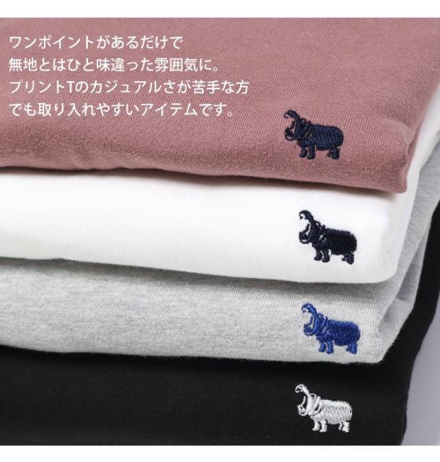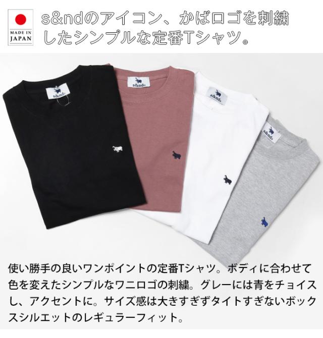 Tシャツ 長袖 ロンT ワンポイント ロゴ 刺繍 かば メンズ レディース 日本製 綿100% 春 秋 クルーネック s&nd セカンド Sd-R1111 カジュアル アメカジ ブランド おしゃれ プレゼント ユニセックス お揃い コーデ
