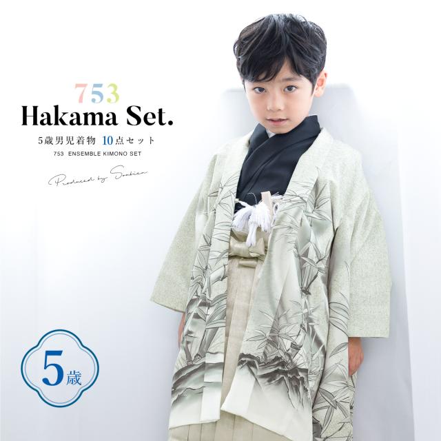 七五三 着物 5歳 販売 五歳 袴セット 羽織 半襦袢 袴帯 羽織紐 扇子 懐剣 お守り袋 雪駄 セット 虎 緑 ゴールド 男の子 和服 男児 送料無料