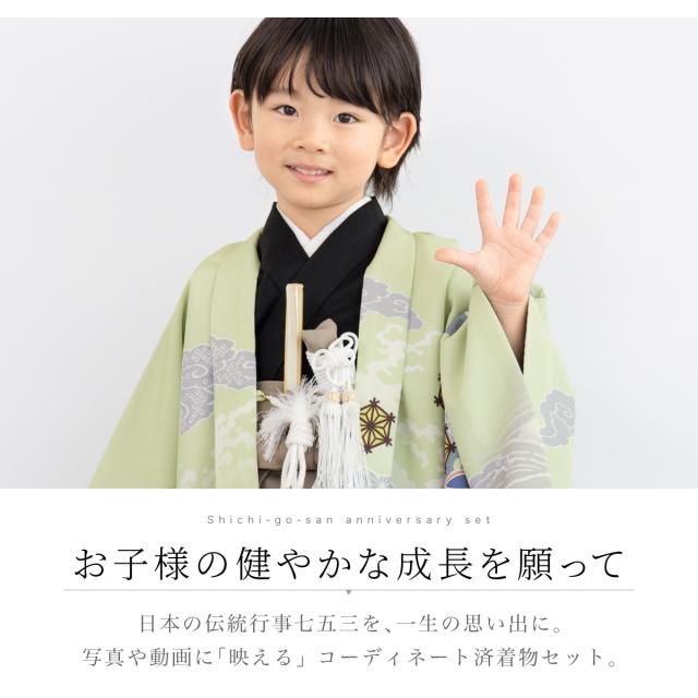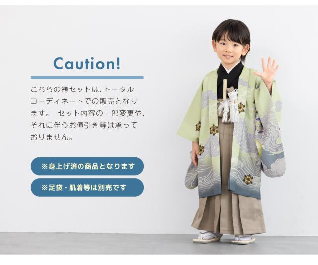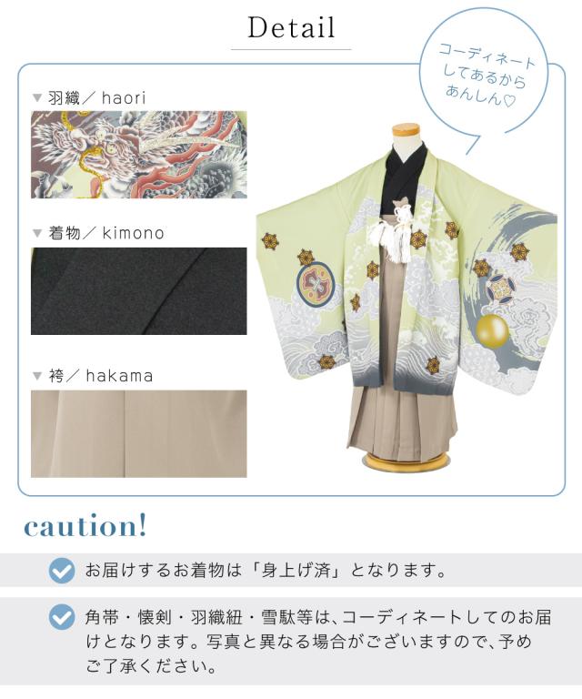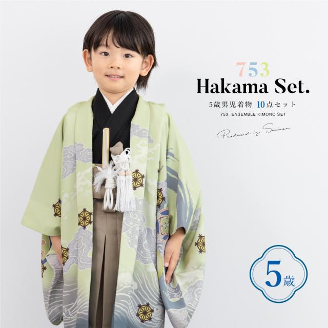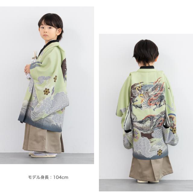 七五三 着物 5歳 販売 五歳 袴セット 羽織 半襦袢 袴帯 羽織紐 扇子 懐剣 お守り袋 雪駄 セット 龍 波 緑 ベージュ 男の子 和服 男児 送料無料