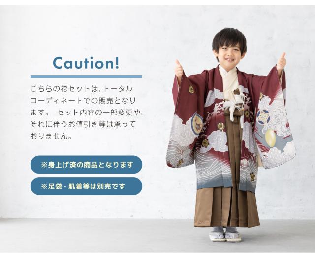 男の子のお祝いにピッタリな、着物・袴セットです。