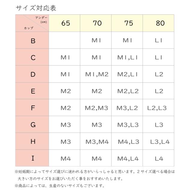 | サイズ | マタニティM3 アンダーバスト:65-75cm トップバスト:90-105cm (F70・F75・G65・G70・G75・H65・H70) マタニティL3 アンダーバスト:73-84cm トップバスト:98-110cm (F80・G75・G80・H70・H75・H80) ※妊娠による体型変化には個人差がありますので、 サイズが合わなくなってきたと感じられたら サイズチェックをお勧めします。 |