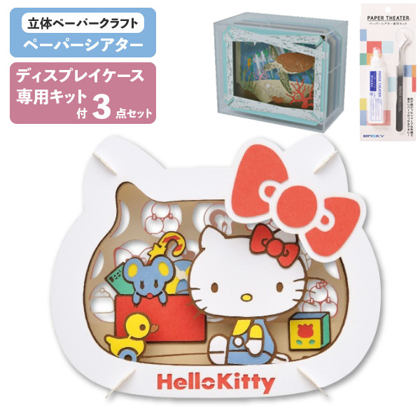 【3点セット 本体・ケース・キット】 ペーパーシアター サンリオキャラクターズ ハローキティ PT-308X + ディスプレイケース PT-CS2N + 専用キット エンスカイ PAPER THEATER 接着剤 ピンセット クラフト ホビー インテリア 工作 立体パズル プレゼント