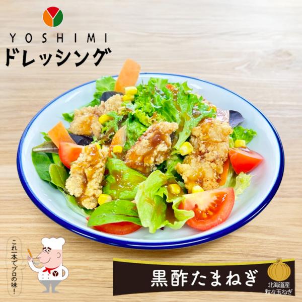 玉葱の甘みと黒酢のコクが素材の味を引き立てる、YOSHIMI オリジナルドレッシングです。
