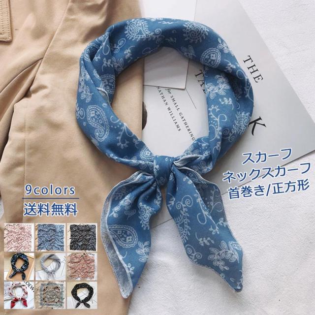 スカーフ レディース ネックスカーフ バンダナ 首巻き 正方形 花柄 シンプル 軽量 薄手 アクセサリー 春夏秋 通勤 制服 ビジネス おしゃれ