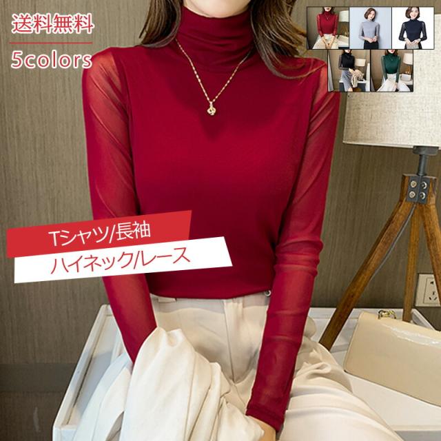 Tシャツ レディース ハイネック 無地 長袖 シースルー セクシー 透け カジュアル 肌見せ 着痩せ トップス ファッション 春秋冬 おしゃれ