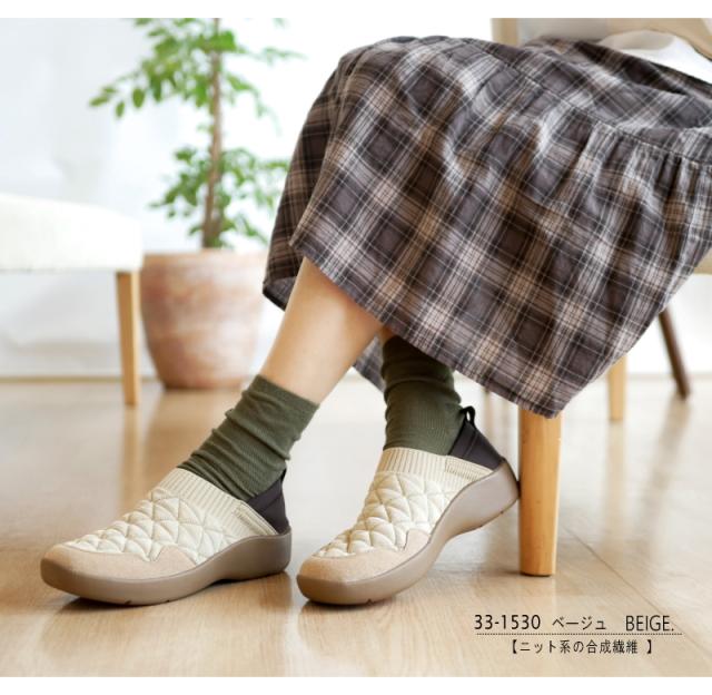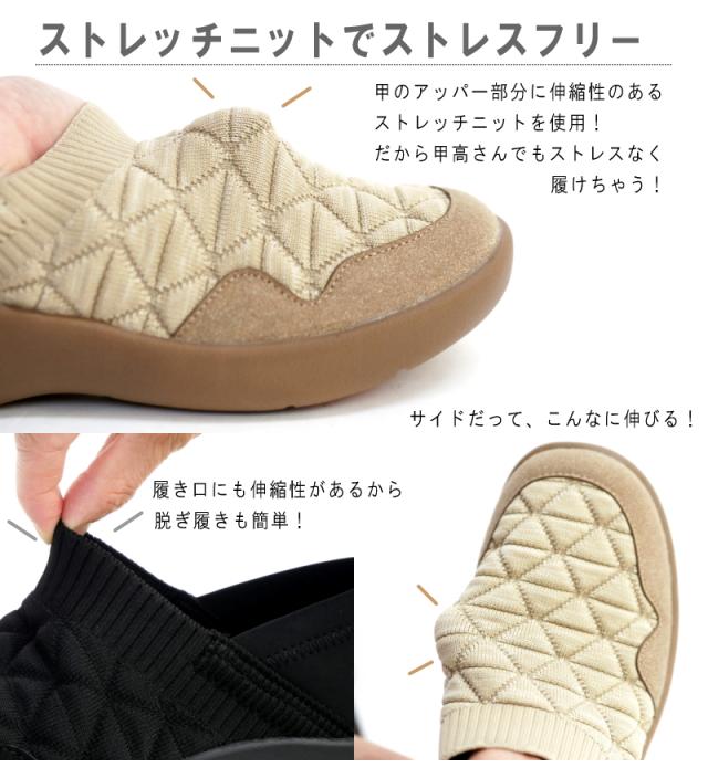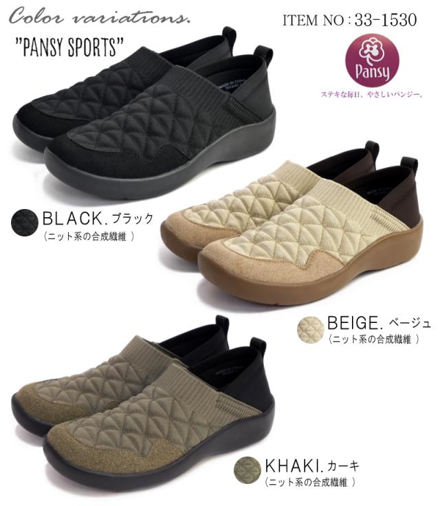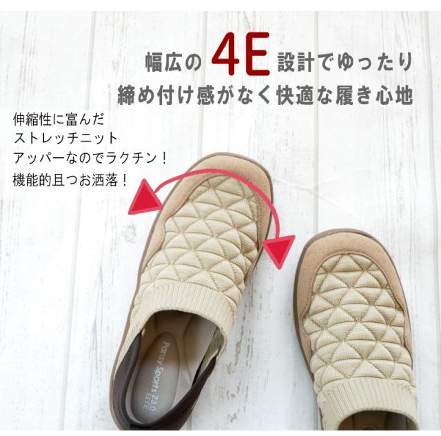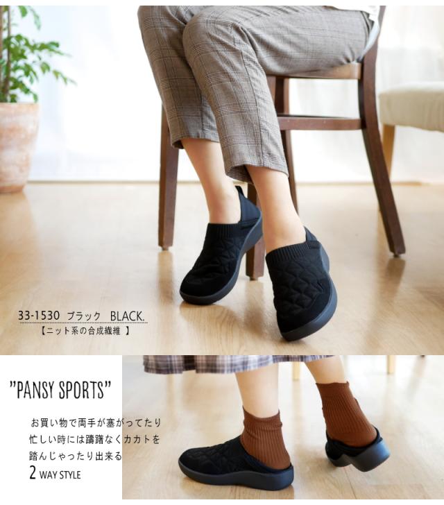 「pansy sports」カカトも踏めるオブリークトゥ・ストレッチニット・スリッポンシューズ