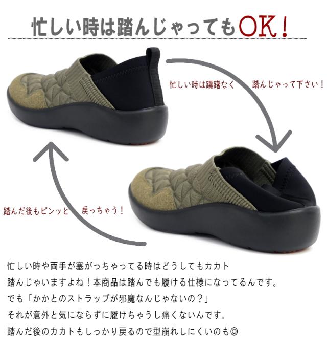 忙しい時や両手が塞がってる時などに大変便利です。中敷きにはU字アーチクッションで