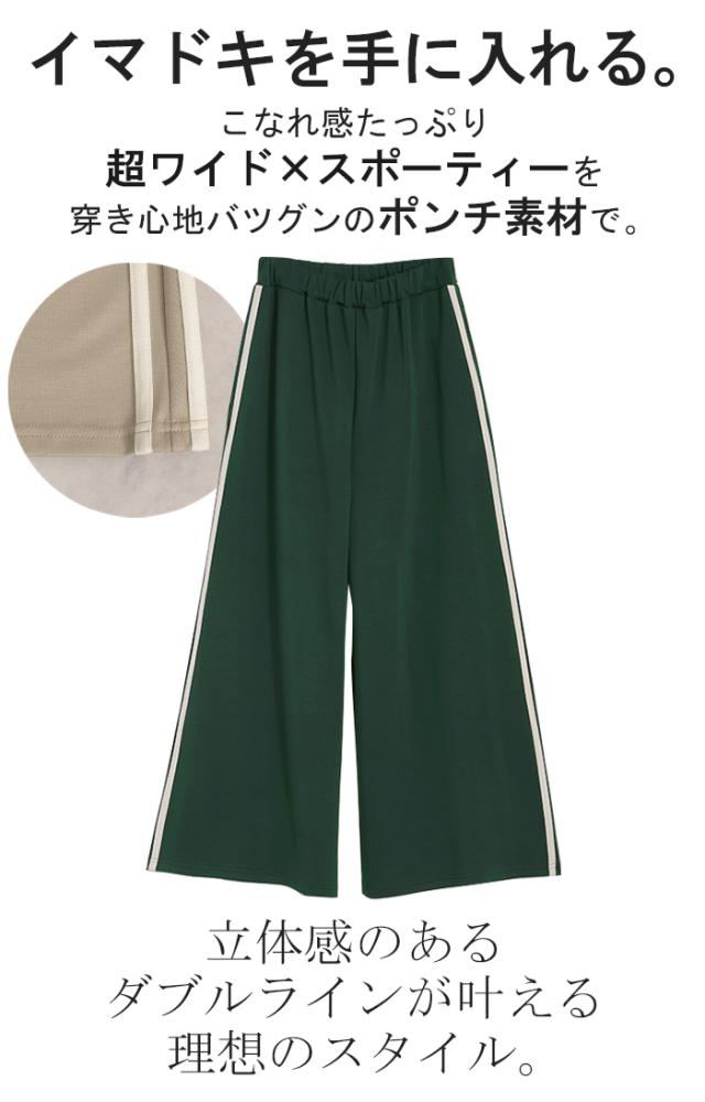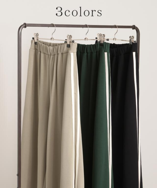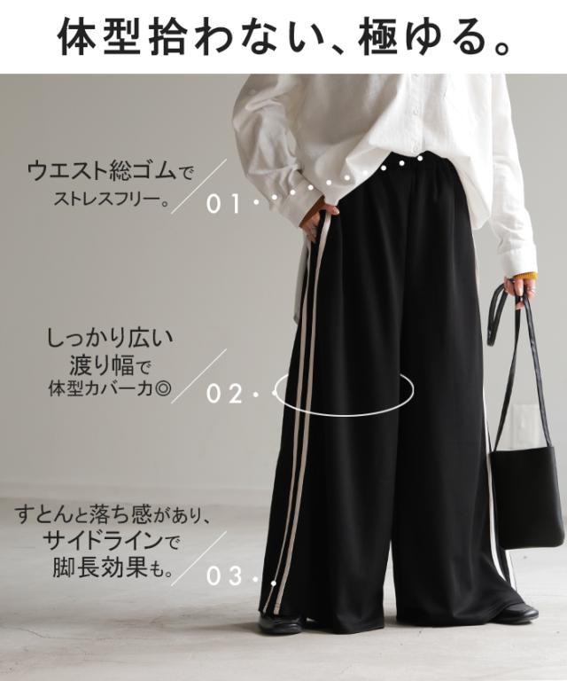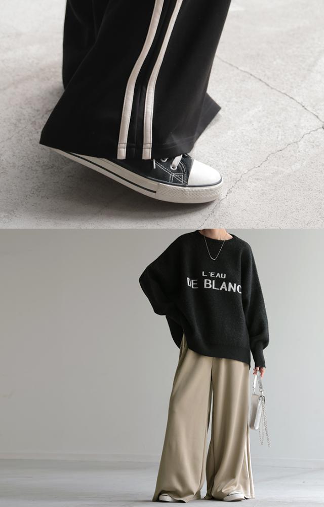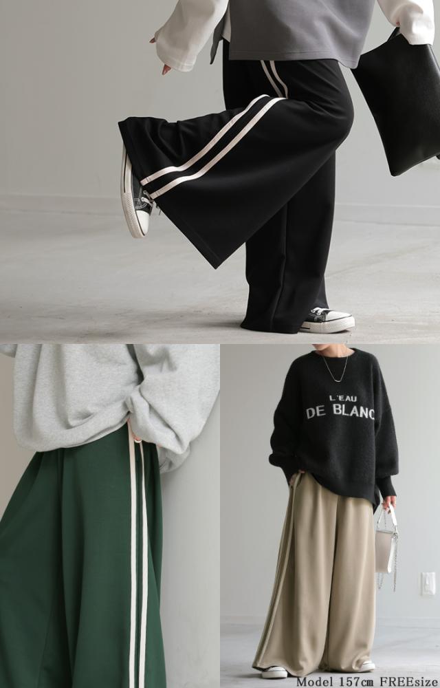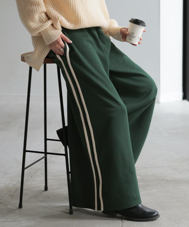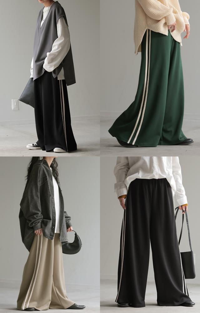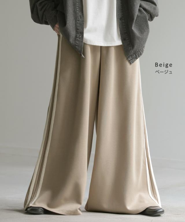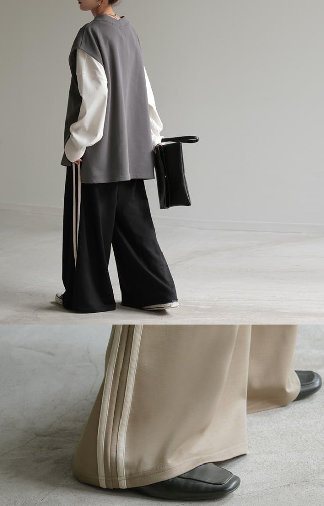 サイドラインがアクセントのワイドシルエットパンツです。