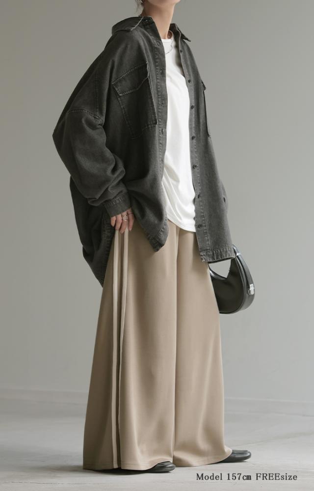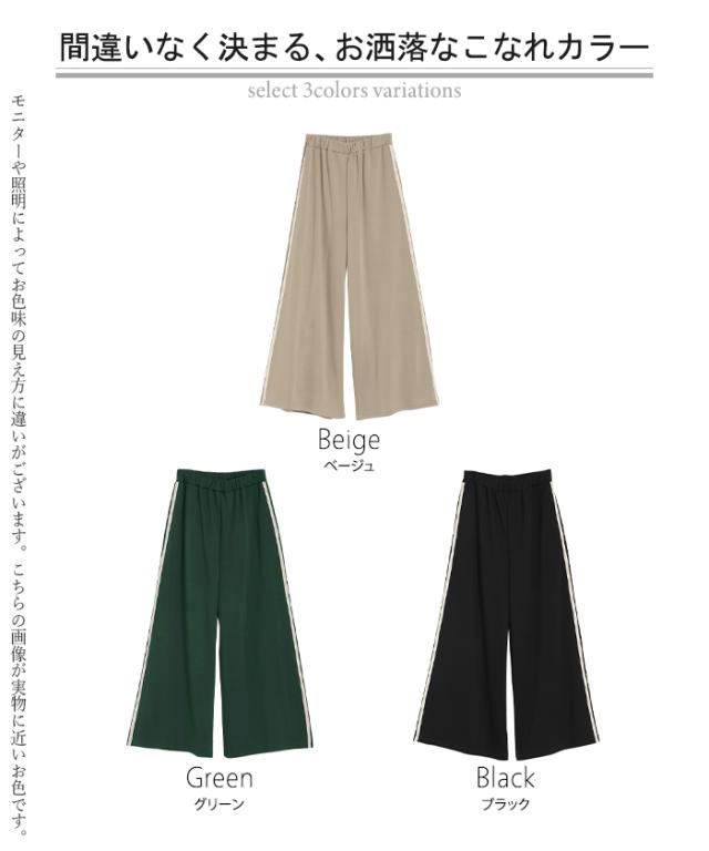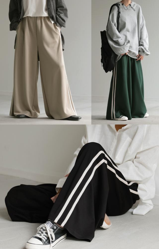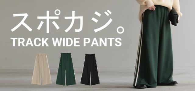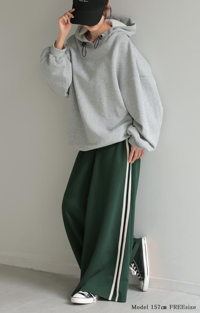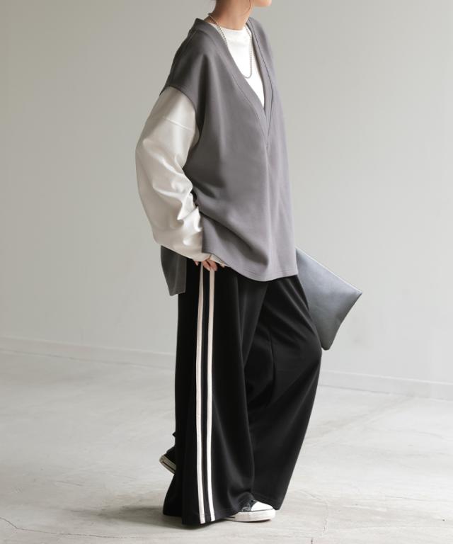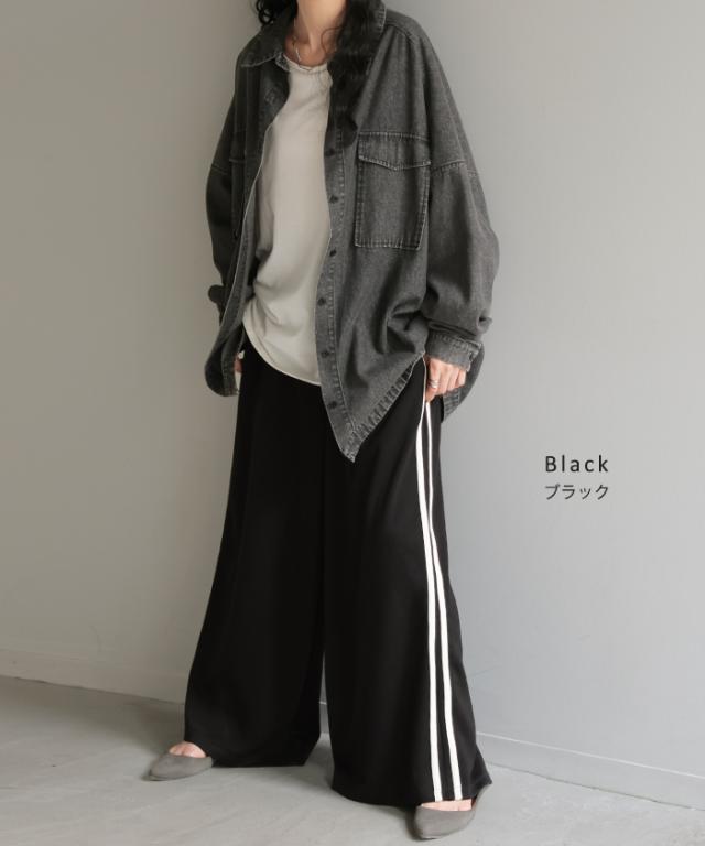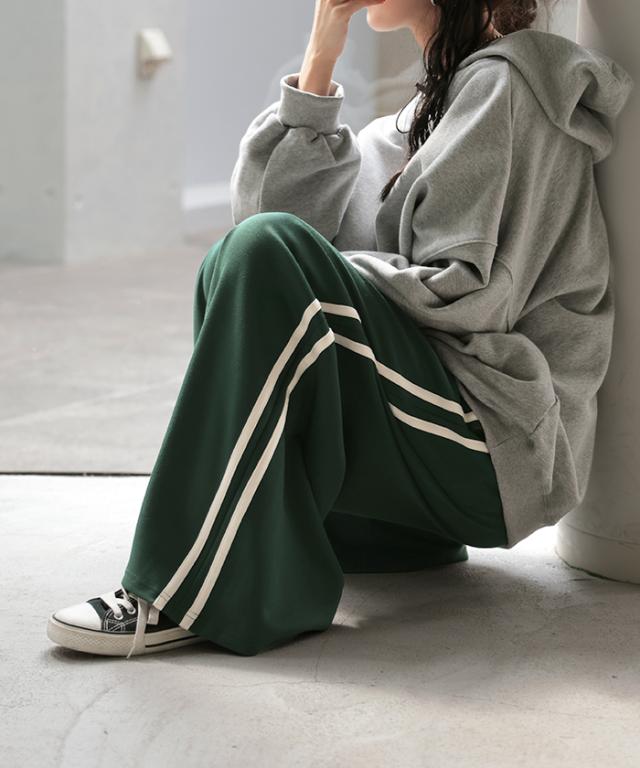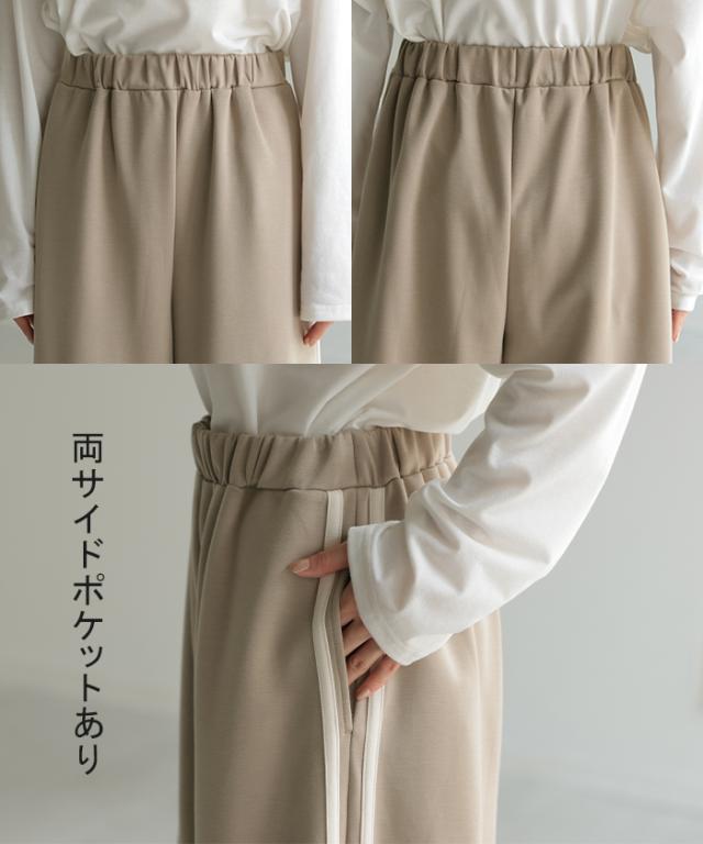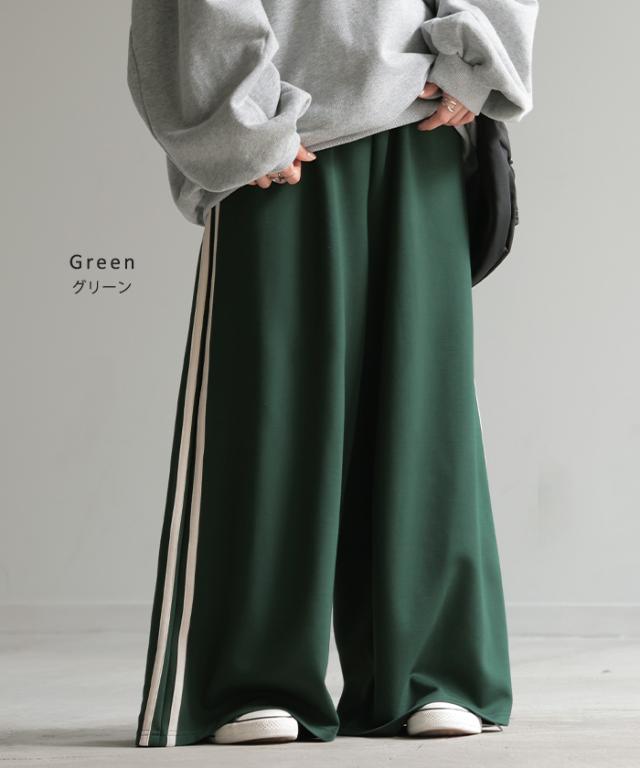 サイドラインがアクセントのワイドシルエットパンツです。