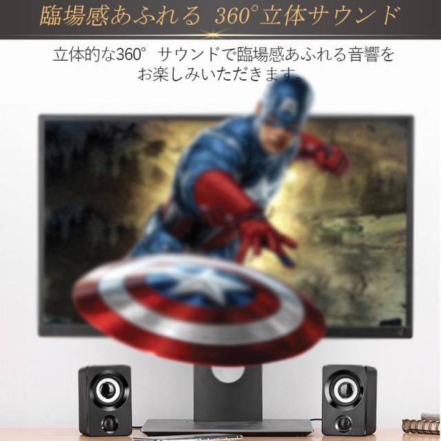 PCスピーカー 高音質 USB 有線 小型 ステレオト サウンド コンパクト 大音量 重低音 スマホ パソコン テレビ 音楽 オシャ