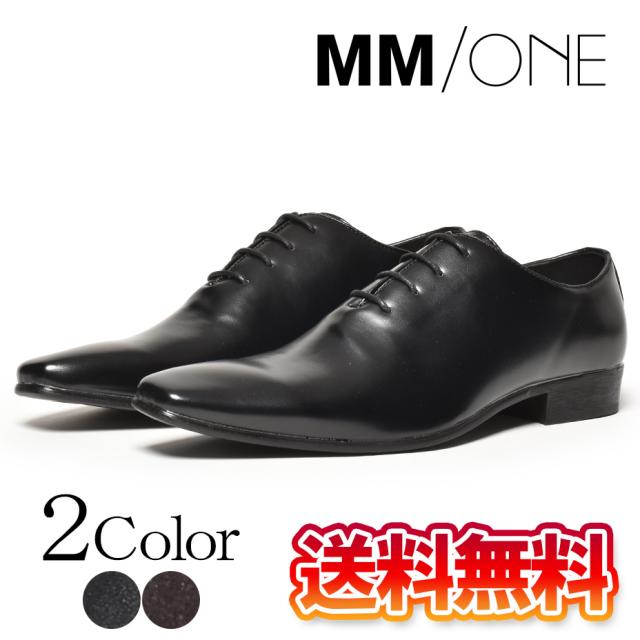 ビジネスシューズ メンズ 革靴 ホールカット ドレスシューズ カジュアルシューズ レースアップ ワンピース プレーントゥ ロングノーズ 冠婚葬祭 シンプル 短靴 紐靴 黒 ブラック 茶色 ブラウン ブランド MM/ONE エムエムワン 2023 冬 春 春夏
