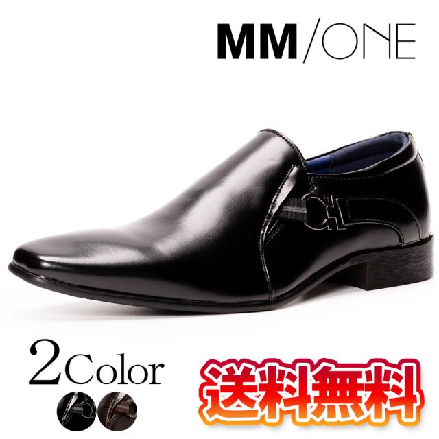送料無料 ビジネスシューズ メンズ 幅広 サイドゴア仕様 靴 シューズ ブラック ブラウン 黒 ローファー フラットシューズ 着脱 便利 無地 上品 革靴 ローカット ビジネス フォーマル 出張 紳士靴 ブランド MM/ONE エムエムワン