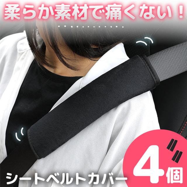 シートベルトカバー ふわふわ 柔らかい 4個セット シートベルト カバー クッション シートベルトパッド シートベルトクッション 黒 ブラック 車 バッグ 鞄 リュック ナップサック カー用品 車内 首 肩 負担軽減 摩擦 運転 大人 子供 子ども こども カスタム