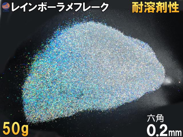 ラメフレーク (50g) 0.2mm 六角 レインボー シルバー 耐溶剤性 パウダー 塗装 ラメ ホログラム キラキラ ネイル ルアー ペイント スプレーガン 塗装ガン プラモデル アート ハンドメイド 釣り具 アクセサリー 美容 デコトラ