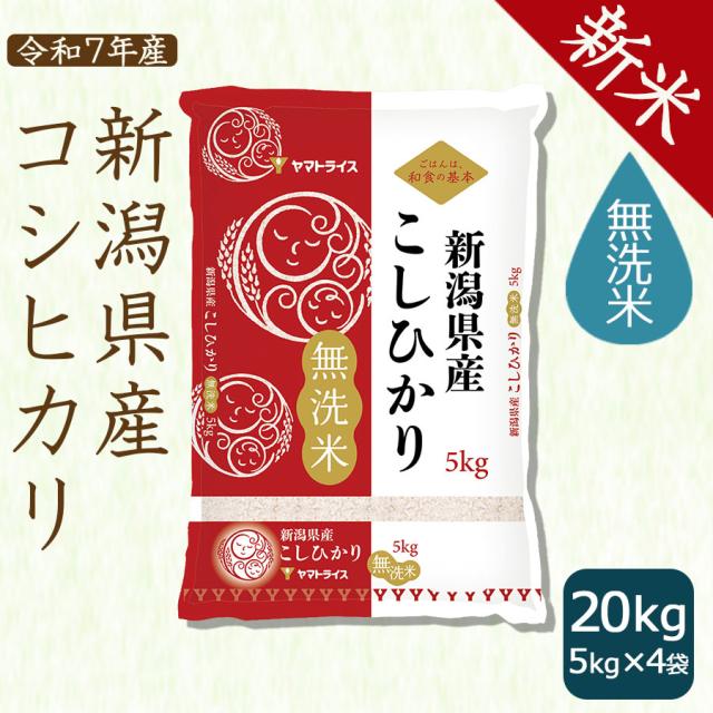 【新米】新潟県産 コシヒカリ 無洗米 20kg (5kg×4袋) お米 白米 米 令和7年産 北海道・沖縄は送料900円