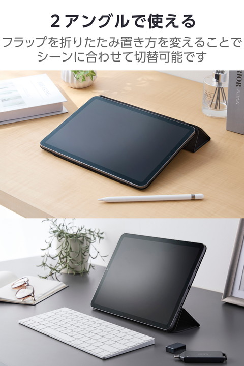 極限まで薄さにこだわった超薄型・軽量設計。動画視聴やタイピング等のシーンに合わせて2アングルにできる11インチiPad Air(M2)、iPad Air (第5世代 2022年モデル)、iPad Air (第4世代 2020年モデル)用フラップケースです。iPad本体に内蔵されたマグネットを利用して、iPadの背面にしっかり固定します。オートスリープ/オートウェイクアップ機能付きです。