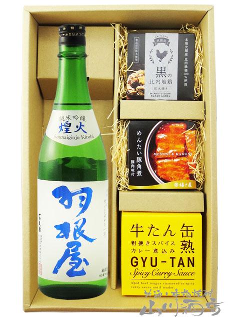 日本酒 おつまみセット 羽根屋 はねや 純米吟醸 煌火 きらび 生原酒 720ml 十 贅沢缶詰おつまみ 3種セット 送料無料 商品番号 7991