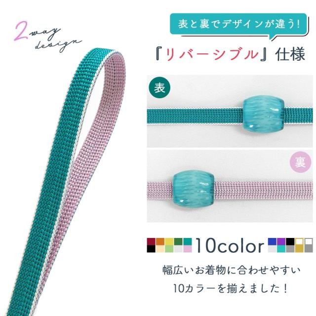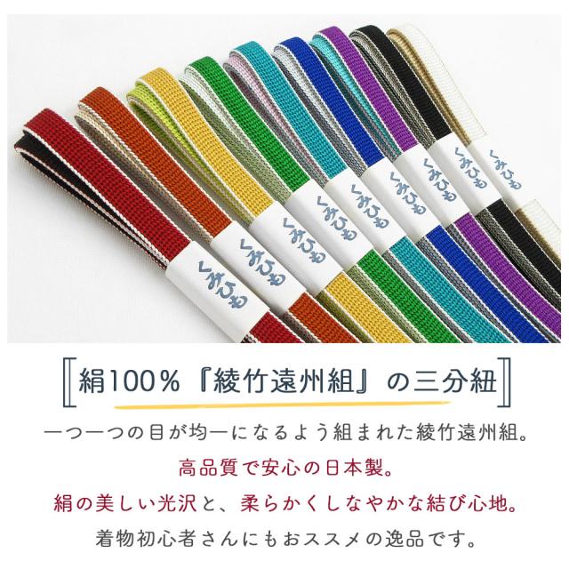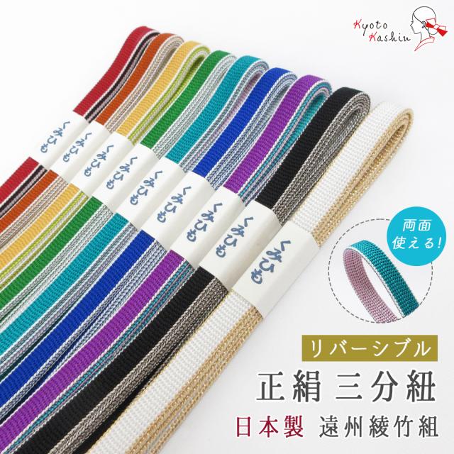 絹100%、リバーシブル仕様の『正絹三分紐』でございます。