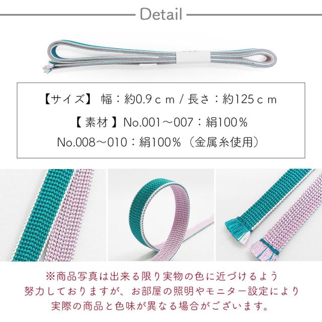 【10本までメール便送料無料】 正絹 リバーシブル 三分紐 綾竹遠州組 帯締め 絹100% 金属糸 伝統的工芸品 両面 巾9mm 約125cm 3分紐 10色 綾竹遠州昼夜 赤 オレンジ 黄色 緑 青 紫 金 銀 黒 白 和装小物 着付け小物 レディース 女性 通年用 お洒落 カジュアル 着物
