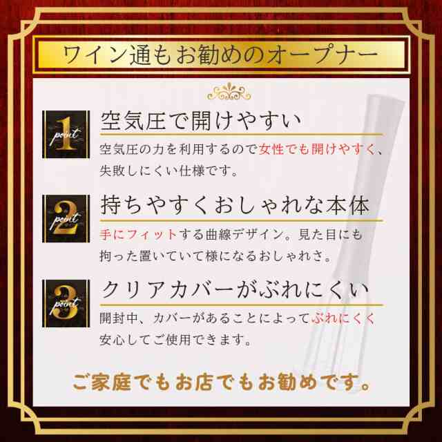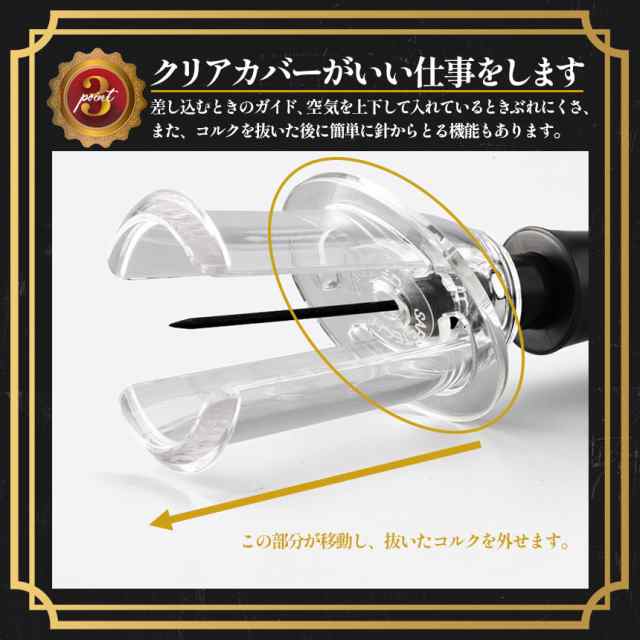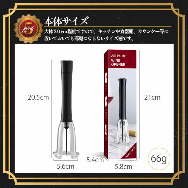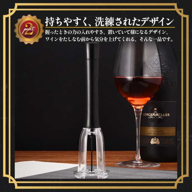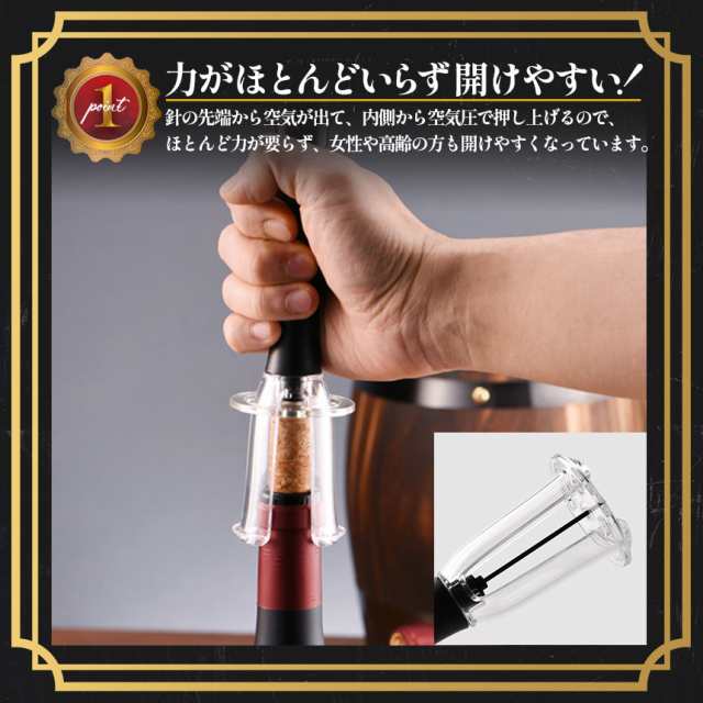 ワインオープナー コルク抜き 空気圧式 コルク 栓 真空 かんたん 簡単 手軽 空気圧 ポンプ式 ポンプ ワイン 栓抜き 女性 男性 高齢者